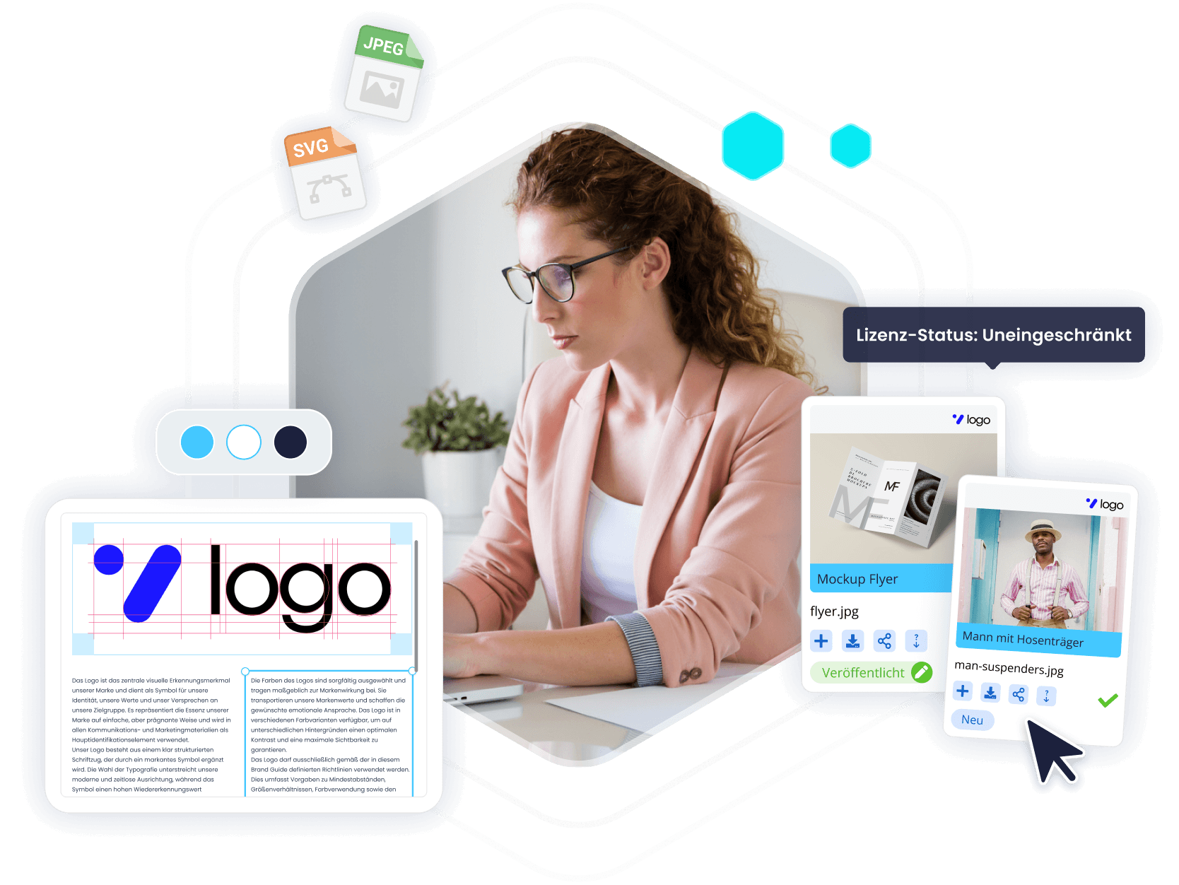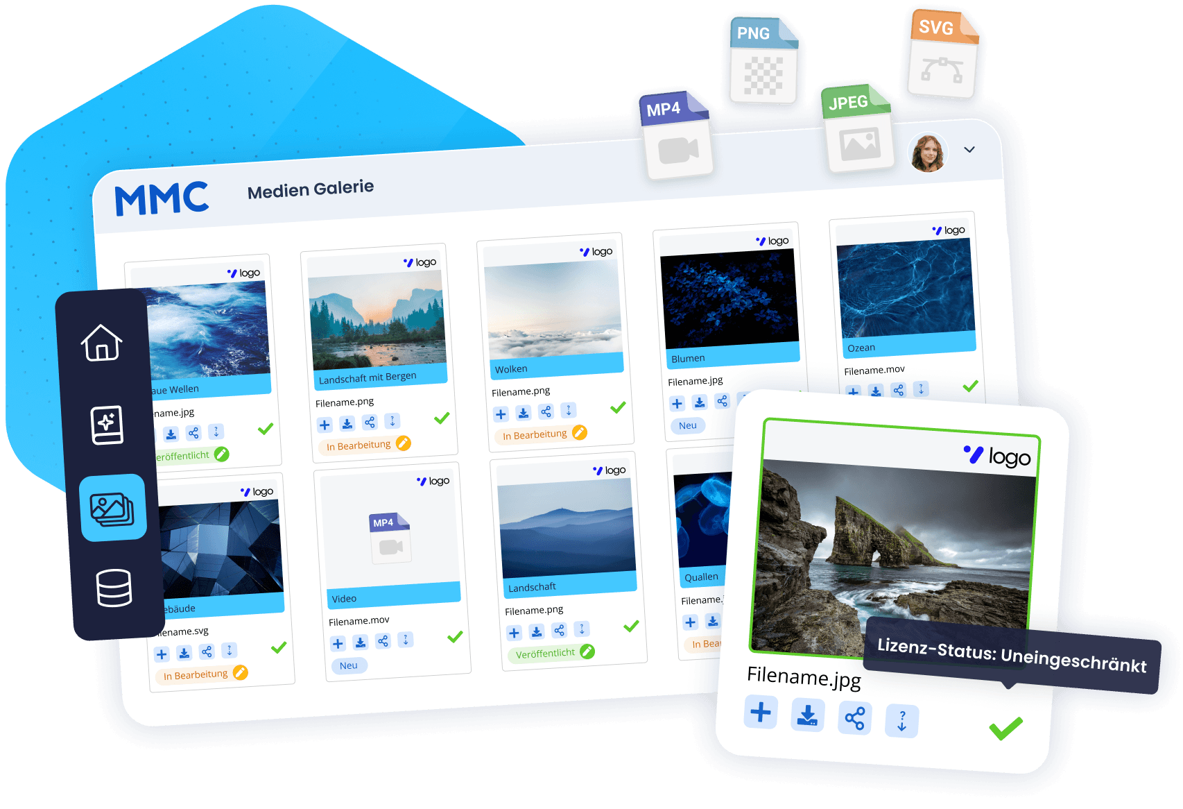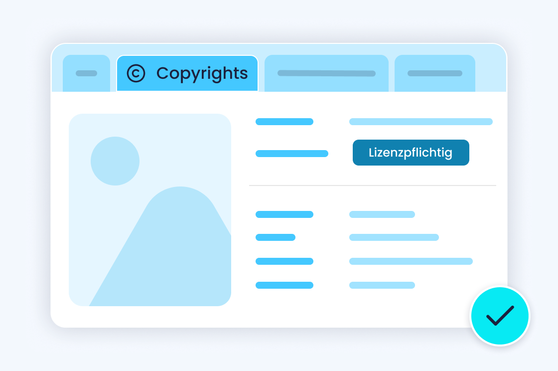 Jedes Asset trägt seinen Lizenzstatus sichtbar. Was freigegeben ist, erkennen Sie auf einen Blick.