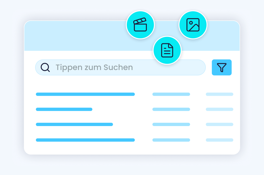 Per Freitext und Filter finden Sie jeden Inhalt im MMC sofort. Nach Dateityp, Bibliothek oder Attribut.