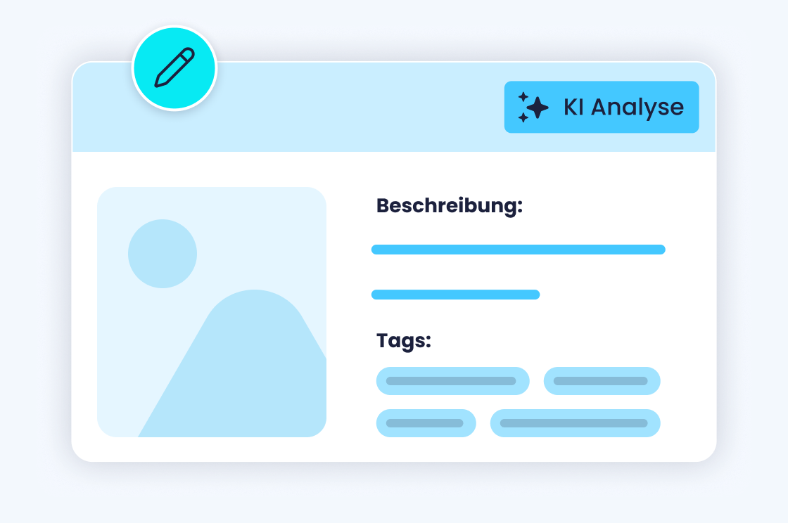 KI vergibt präzise Tags und generiert barrierefreie ALT-Texte für Bild-Assets automatisch. Ohne manuellen Pflegeaufwand.